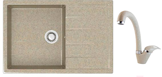 Мойка кухонная Berge BG-7603 + смеситель GR-4003 (песочный глянец/классик)