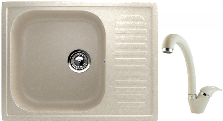 Мойка кухонная Berge BR-6402 + смеситель GR-4003 (бежевый/пирит)