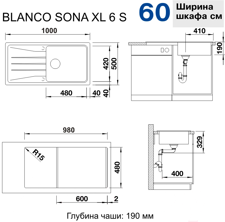 Мойка кухонная Blanco Sona XL 6 S / 519691