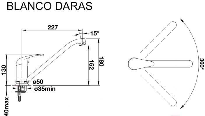 • Комплект поставки смеситель (Daras), отводная арматура, корзинчатый вентиль 3.5", мойка