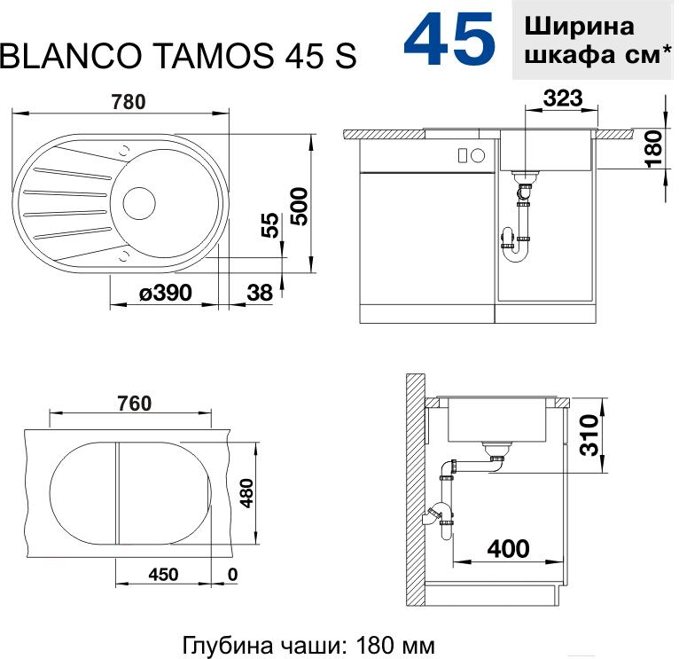 - Совместимые приспособления разделочная доска (Blanco 218421), корзина для посуды (Blanco 220574), дозатор моющего средства (Blanco Tida)