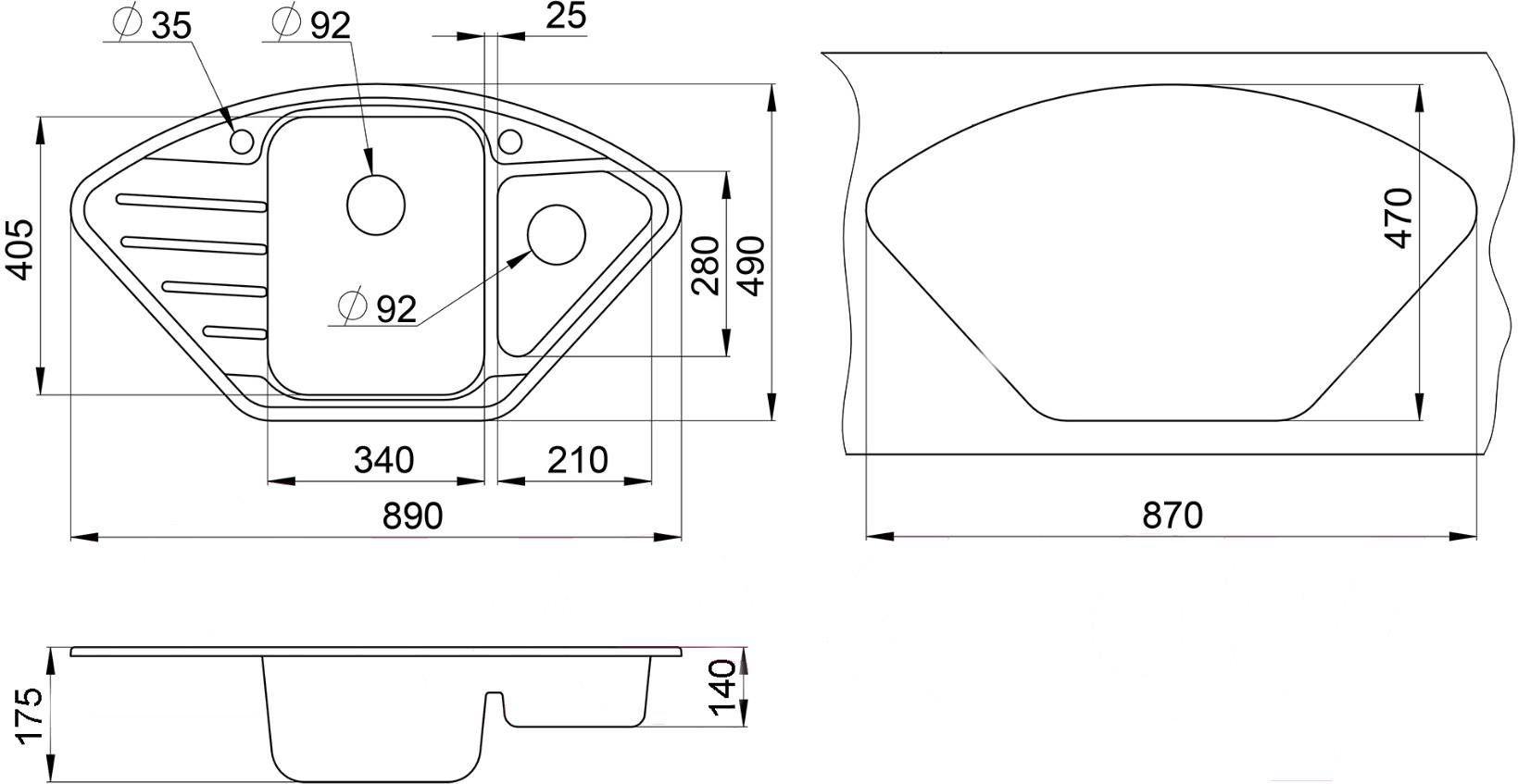 - Комплект поставки герметик, сифон, сливная арматура, смеситель (Argo Spring 35-09/L ), инструкция, корзинчатый вентиль 3.5", мойка