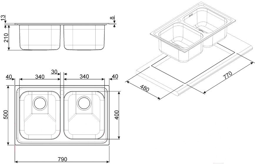 - Дополнительная комплектация сифон, корзинчатый вентиль 3.5", фиксирующие зажимы