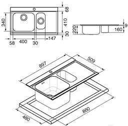 - Ширина мойки 89.7 см
