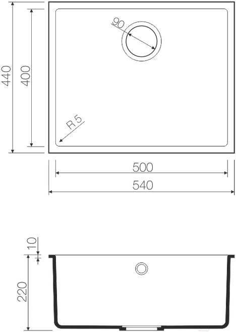 • Толщина мойки 10 мм