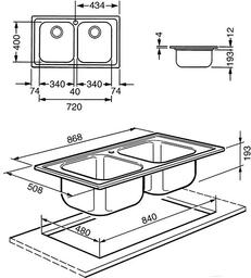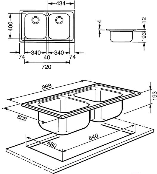 - Толщина мойки 0.6 мм