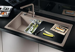 • Совместимые приспособления коландер (Blanco 223077), сифон (Blanco 137262), накладка на сливное отверстие (Blanco CapFlow 517666), смеситель (Blanco Felisa-S, Alta-S, Linus-S), мусорная система (Blanco Select 45/2 518721)