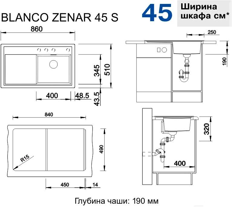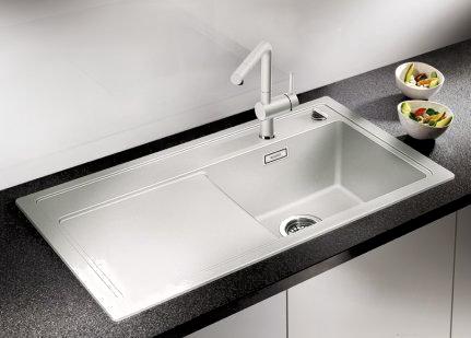- Совместимые приспособления коландер (Blanco 223077), сифон (Blanco 137262), накладка на сливное отверстие (Blanco CapFlow 517666), смеситель (Blanco Felisa-S, Alta-S, Linus-S), мусорная система (Blanco Select 45/2 518721)