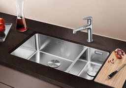 • Совместимые приспособления разделочная доска (Blanco 227697, стекло), корзина для посуды (Blanco 223297), коландер (Blanco 227692), сифон (Blanco 137262), разделочный столик (Blanco 230700, дерево), поддон (Blanco 230734), накладка на сливное отверстие (Blanco CapFlow), смеситель (Blanco Felisa-S, Vonda)