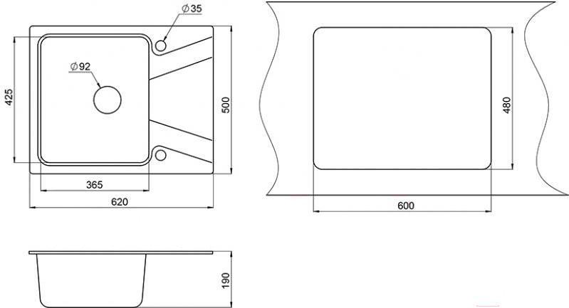 - Комплект поставки герметик, сифон, сливная арматура, смеситель (GR-4003), инструкция, корзинчатый вентиль 3.5", мойка