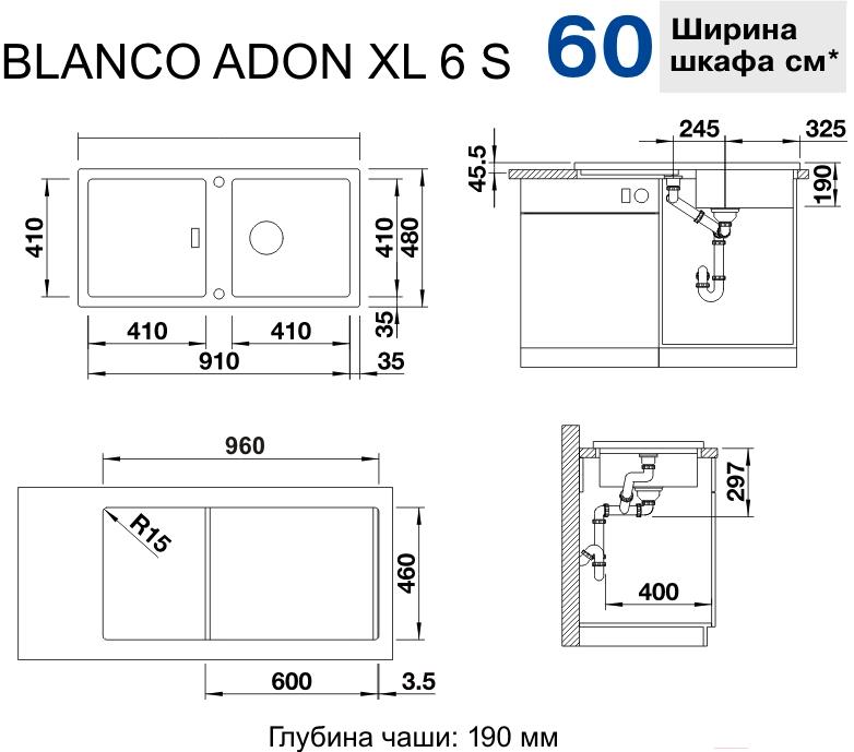 Мойка кухонная Blanco Adon XL 6 S / 523605