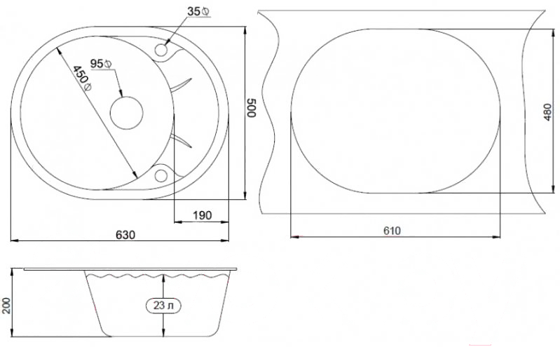 • Комплект поставки герметик, сифон, сливная арматура, смеситель (GR 4003), инструкция, корзинчатый вентиль 3.5", мойка