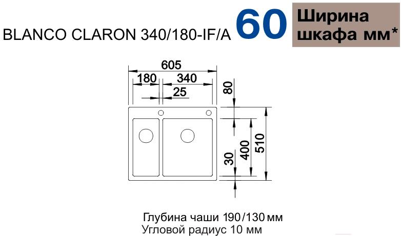 - Мин. ширина шкафа 60 см
