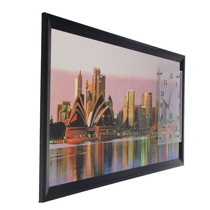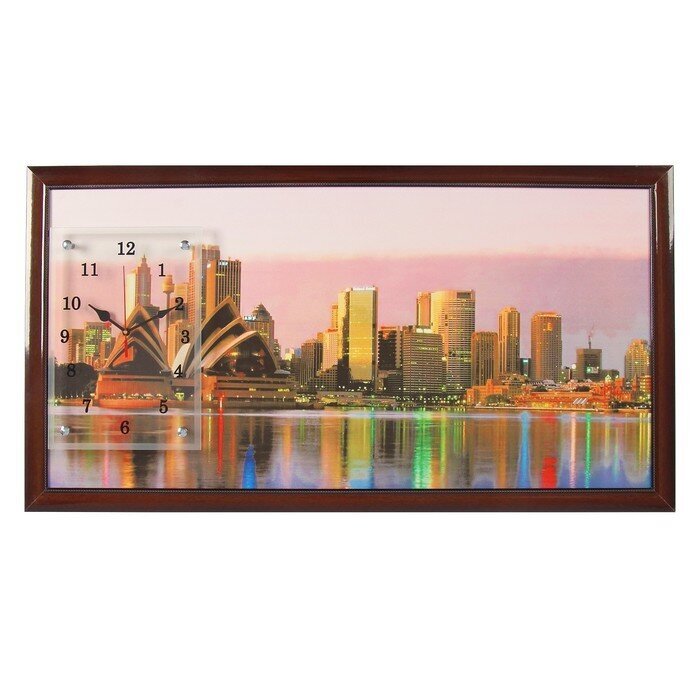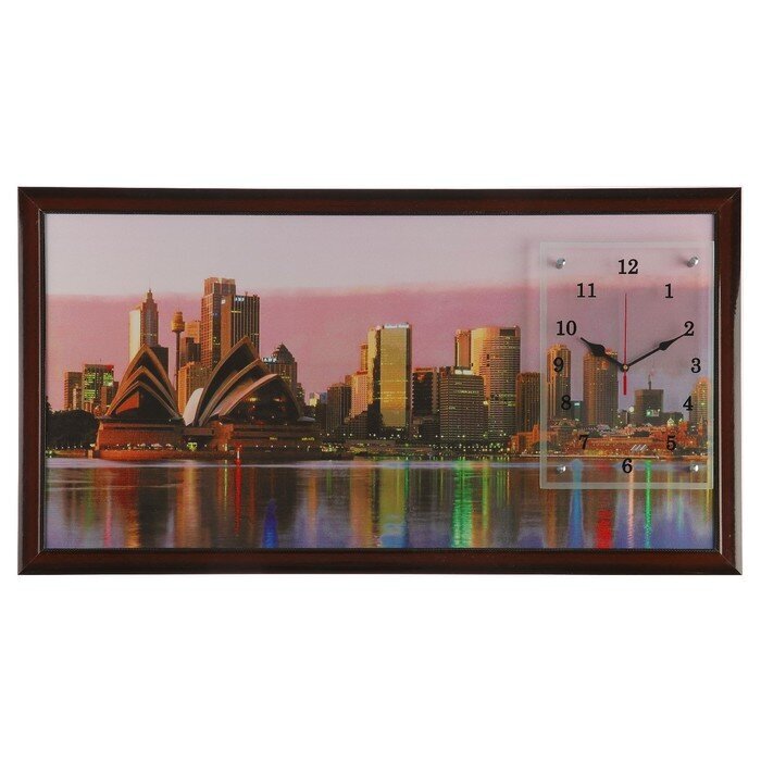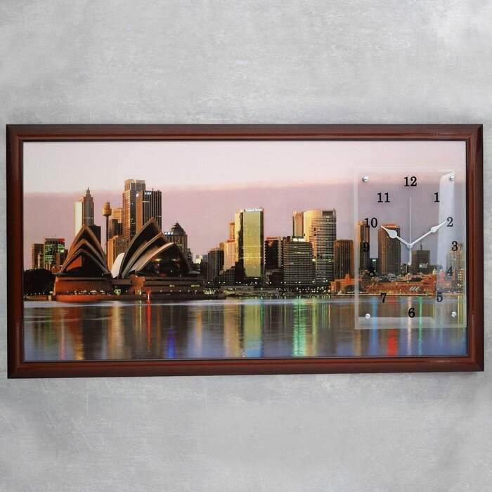 Часы-картина настенные, серия: Город, "Сиднейский театр", 50х100 см, микс
