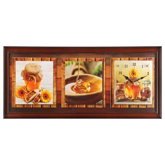 Часы-картина настенные, серия: Кухня, "Медовая фантазия", 35х100 см, стрелки микс