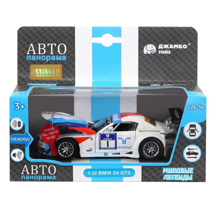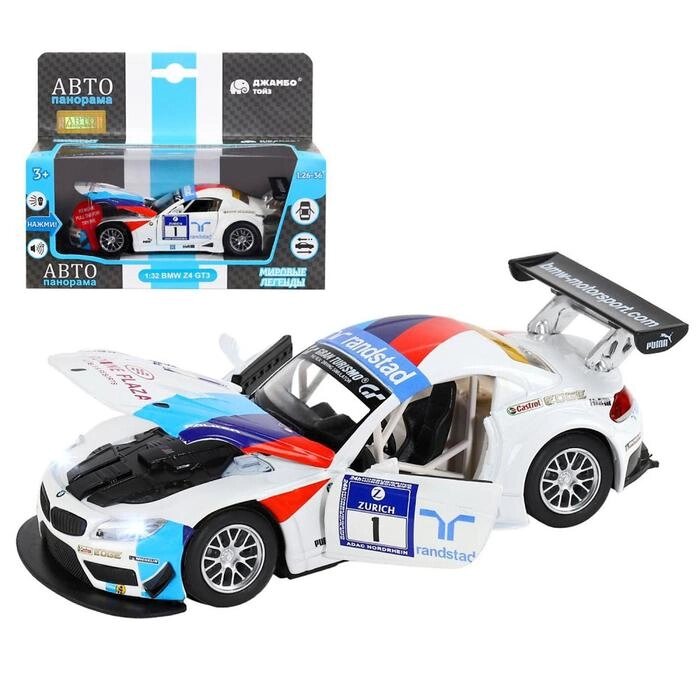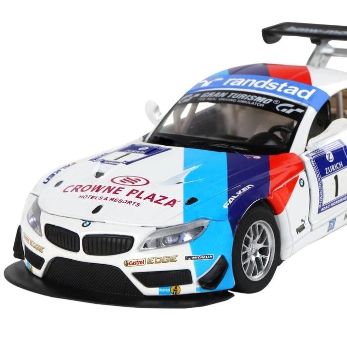 Машина металлическая BMW Z4 GT3 1:32, инерция, световые и звуковые, открываются двери, цвет белый