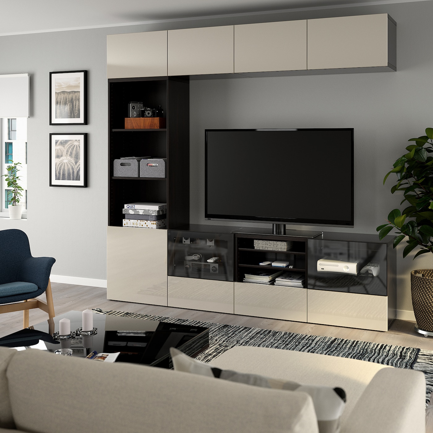 Настенные шкафчики позволяют эффективно использовать пространство над телевизором.