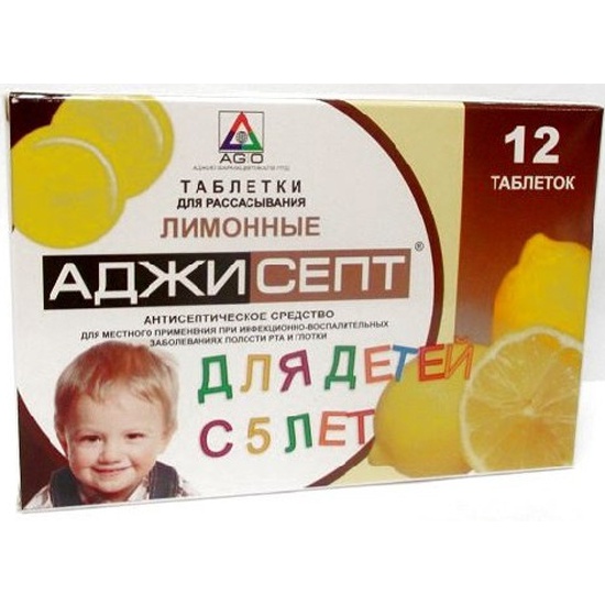 Лекарственное средство Аджисепт (лимон) таб. д/расс. д/дет. №12 8901043001509