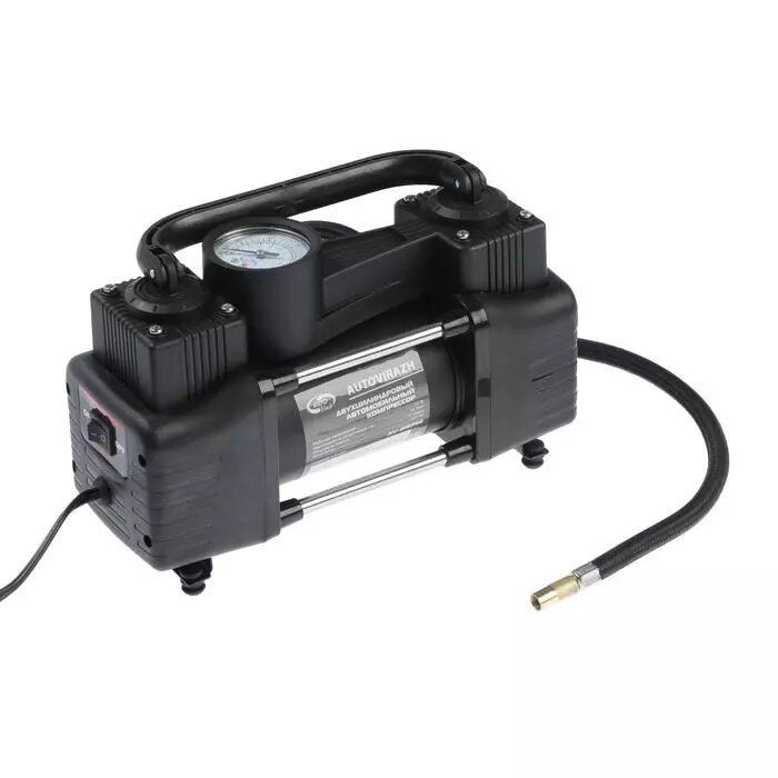 Компрессор автомобильный, двухцилиндровый Autovirazh 75 л/мин с манометром AV-010750