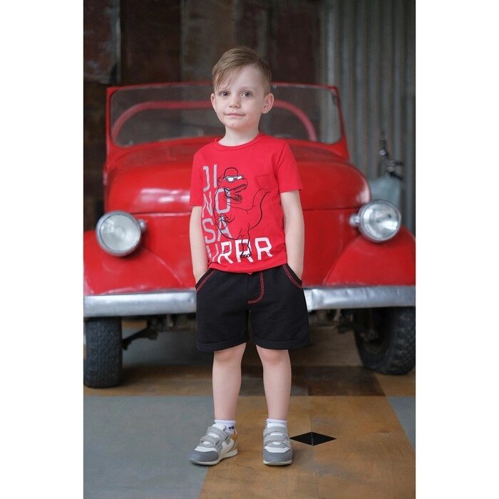 Комплект: футболка и шорты KAFTAN "Динозавр" р.28 (86-92), красный, чёрный