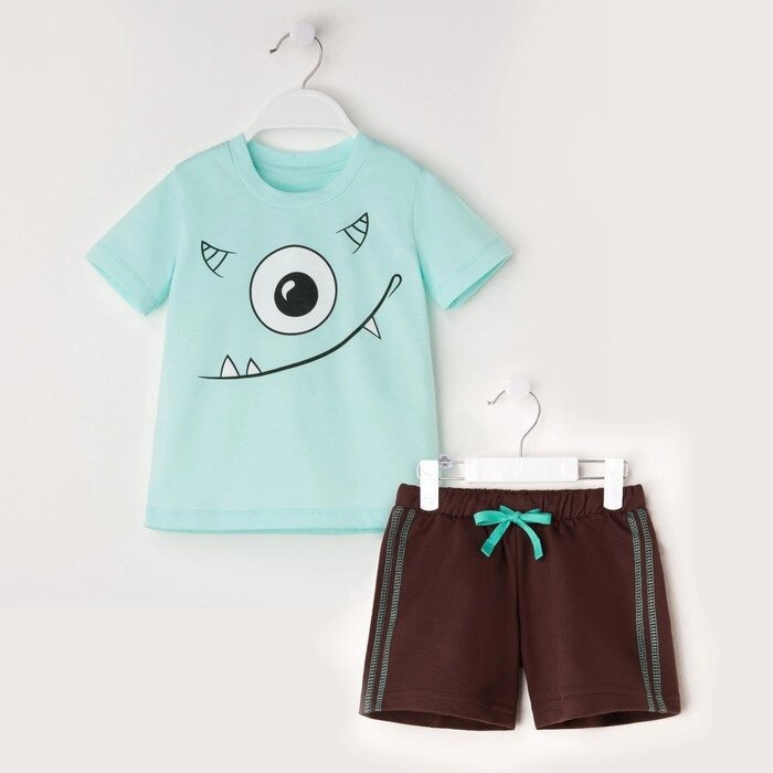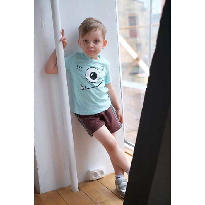 Комплект: футболка и шорты KAFTAN "Монстр" р.34 (122-128), голубой, коричневый