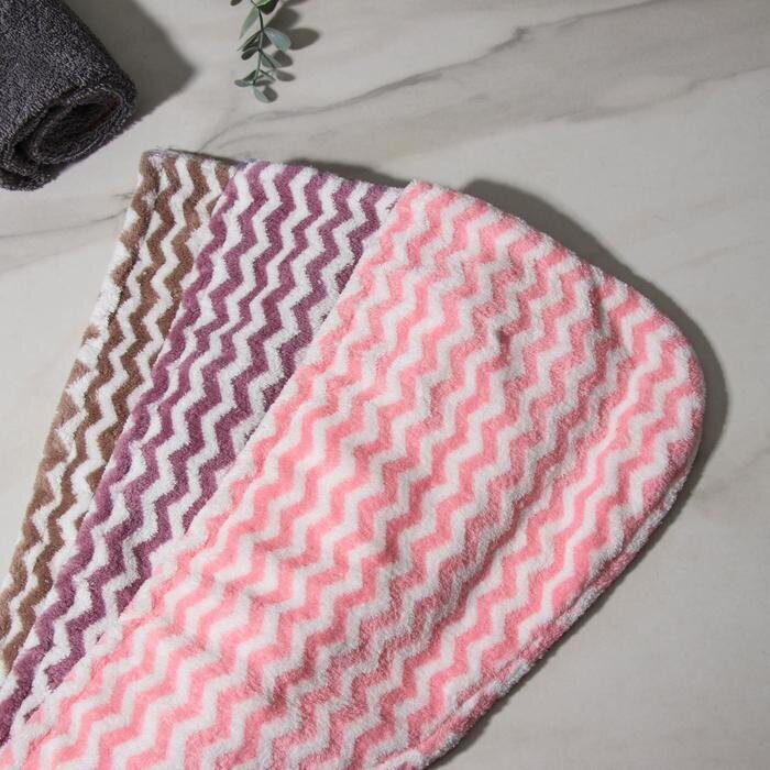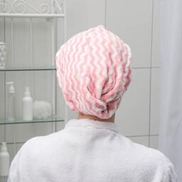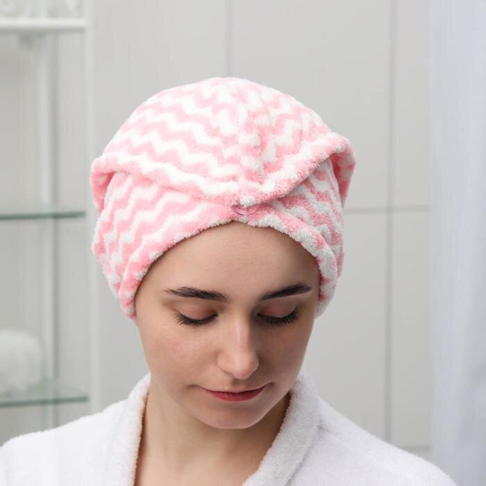 Чалма для сауны/душа с пуговкой «Волна», микрофибра, цвет МИКС