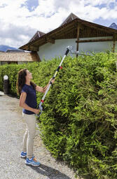 AL-KO HTA 2050 Easy Flex - аккумуляторный инструмент, прекрасно справляющийся с уходом за высоким кустарником и живой изгороди. За счет использования телескопической дуги рабочая высота может достигать 350 см. Лезвия длиной 51 см с двухсторонней заточкой лазером гарантируют получение чистого среза.