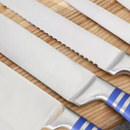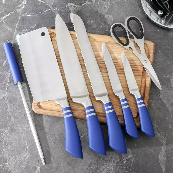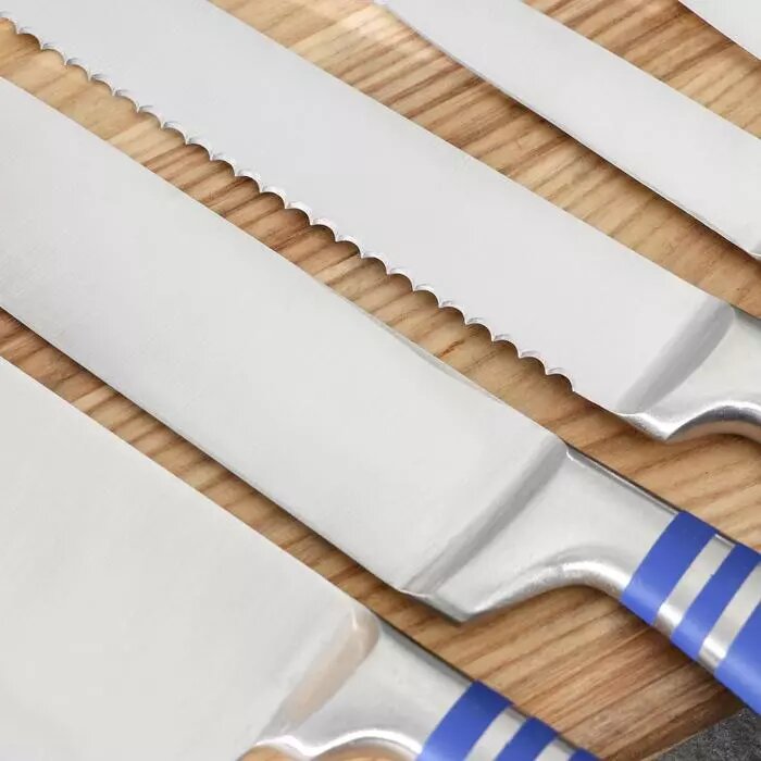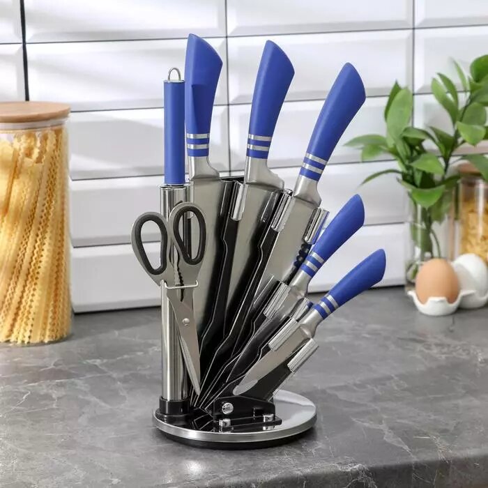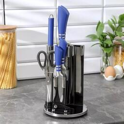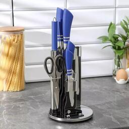 Набор ножей Omega: 5 ножей в подставке, лезвие 8/12,5/19,5/20/20, ножницы, мусат, цвет синий