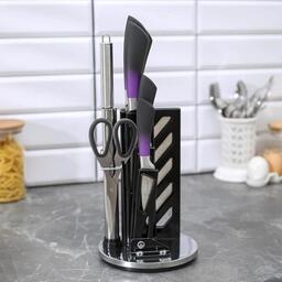 Набор ножей "Самбука", лезвия 8,5/12/19,5/20/17 см, мусат, ножницы, цвет фиолетово-чёрный