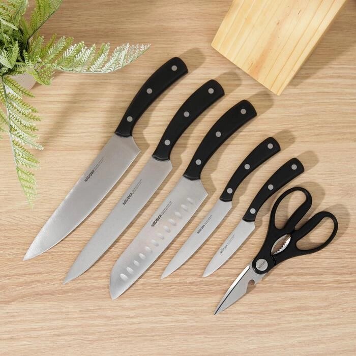 Набор NADOBA HELGA из 5 ножей, ножниц и блока с ножет., лезвие9см13см17,5см20см20см