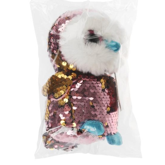 Мягкая игрушка в виде яркой совы с блестящими пайетками сразу привлечёт
