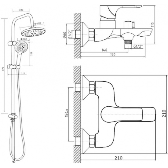 высота: 97 смРычажное управлениеЛатунь / нержавеющая сталь / отдельные элементы изготовлены из пластикаразмер верхнего душа: 20 смВылет верхнего душа: 38 смразмер лейки: 10 смЛейка с 3 режимами струиДлина излива: 19 смФиксированный изливТрадиционный изливдлина шланга: 150 смМеталлический шлангМеста