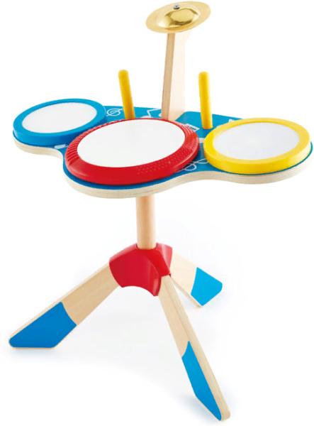 - Особенности три барабана, тарелка и две палочки