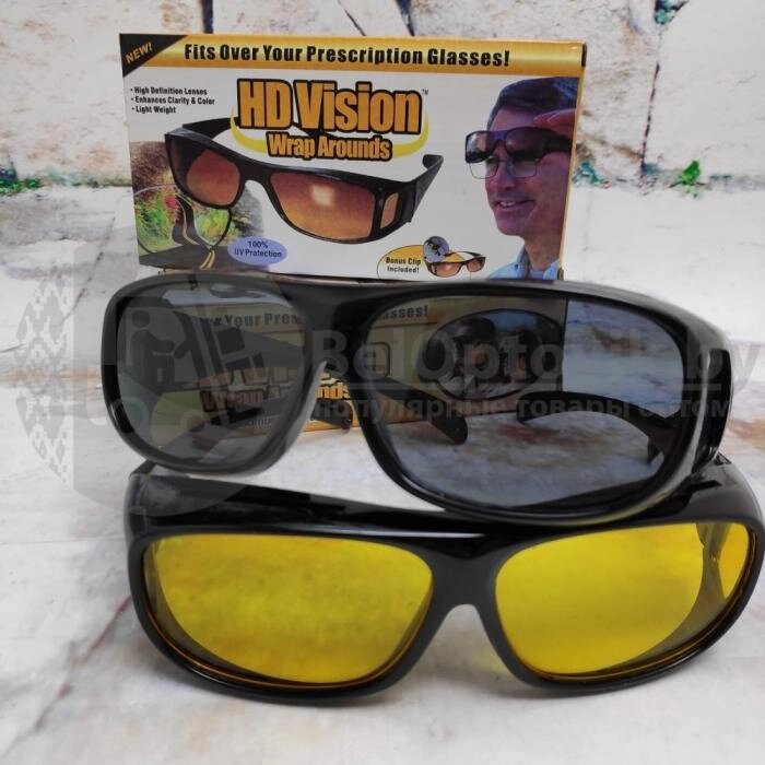 Антибликовые очки, солнцезащитные очки для водителей HD Vision Wrap Arounds 2 пары ( защита от яркого света и ультрафиол