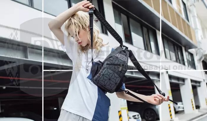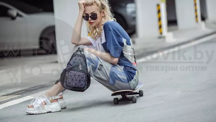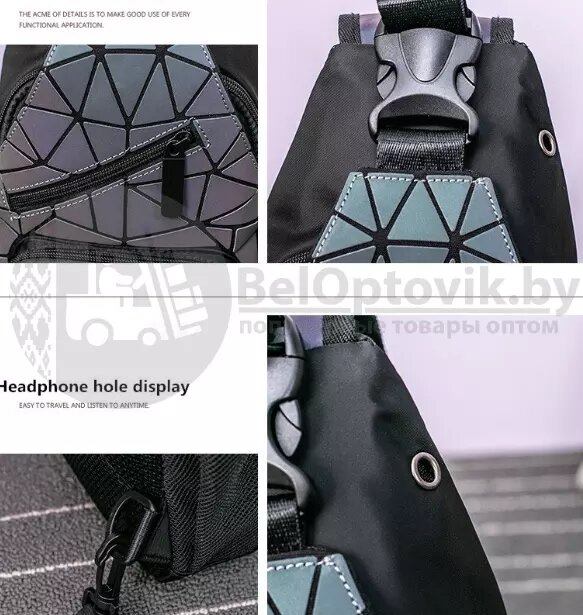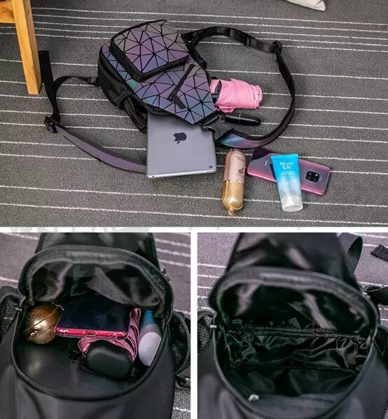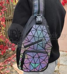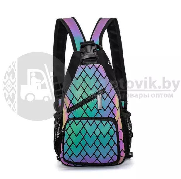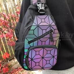 Светящийся нагрудный рюкзак-сумка Хамелеон. Светоотражающий неоновый мини рюкзак Абстракция