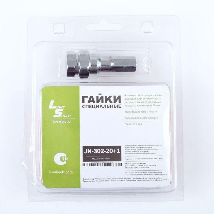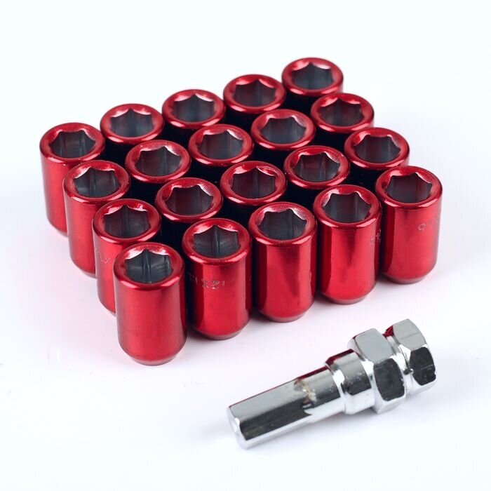 Гайки колёсные JN-302, 12х1.25, 32 мм, конус, набор 20 шт + ключ, красные