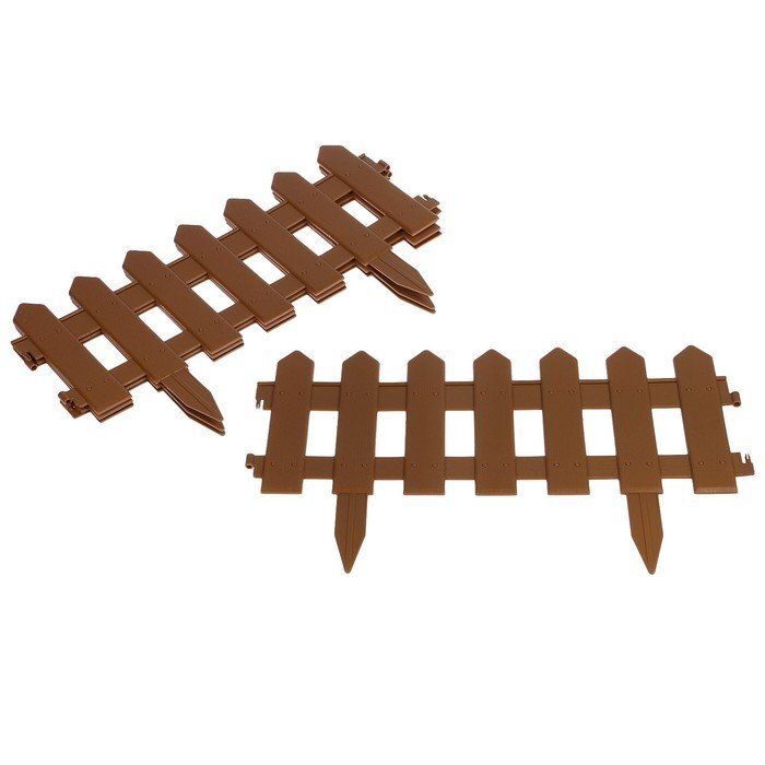 Ограждение декоративное, 30 196 см, 4 секции, пластик, коричневое, «Палисадник»