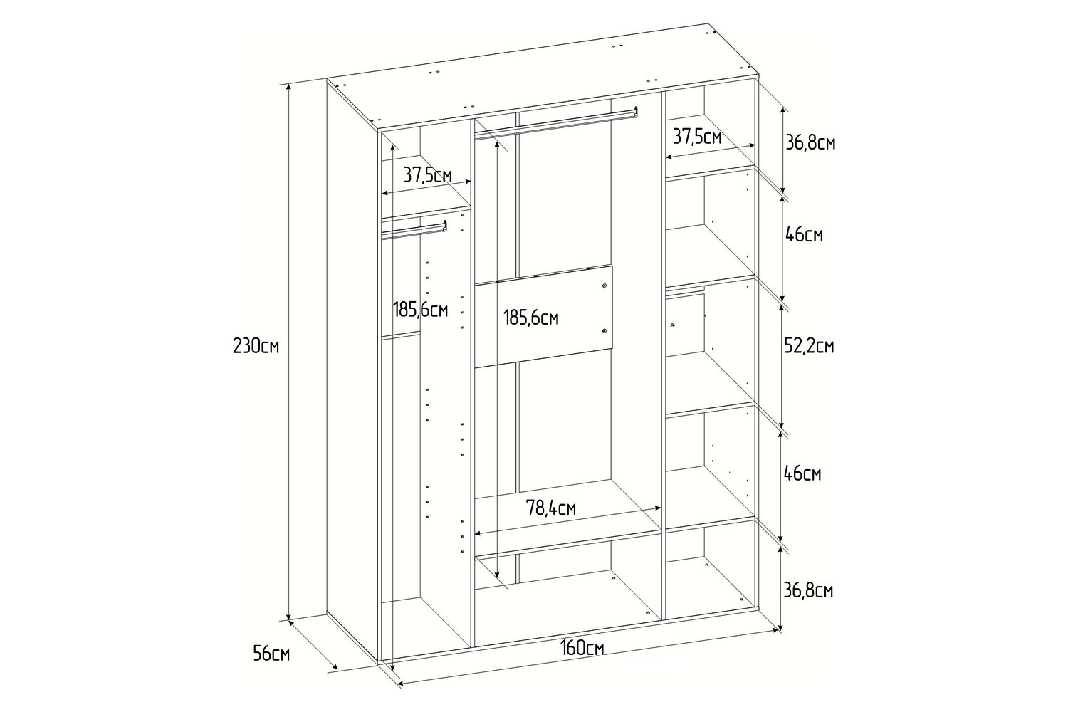 - Размеры (ШxГxВ), в сантиметрах 160х57,9х230