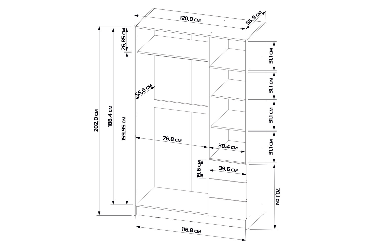• Размеры (ШxГxВ), в сантиметрах 120х57,5х202