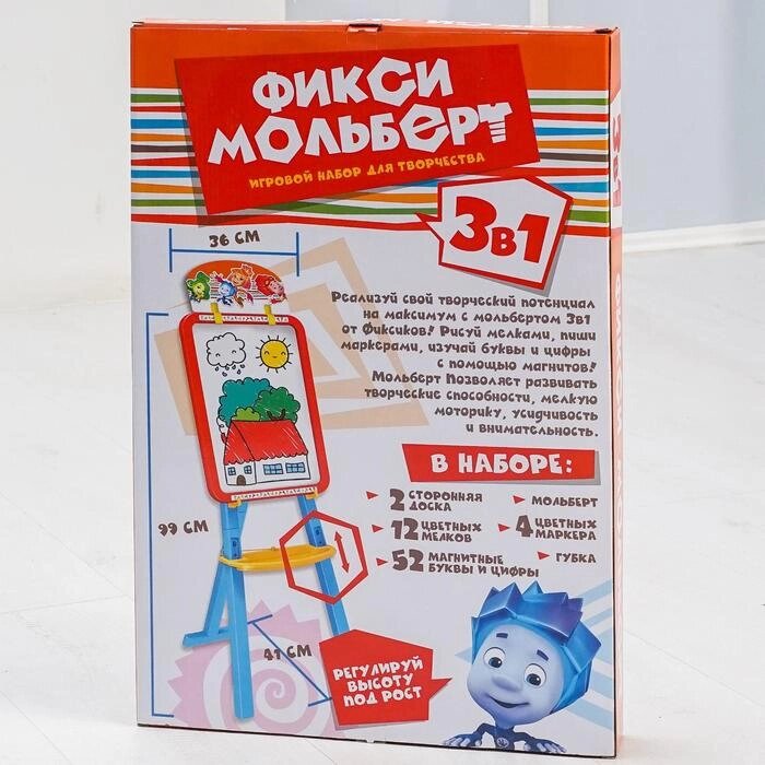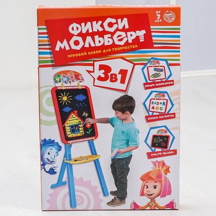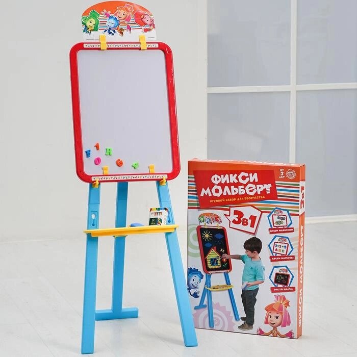 Мольберт 3 в 1 ФИКСИКИ, пиши мелом, рисуй фломастером, клей магниты