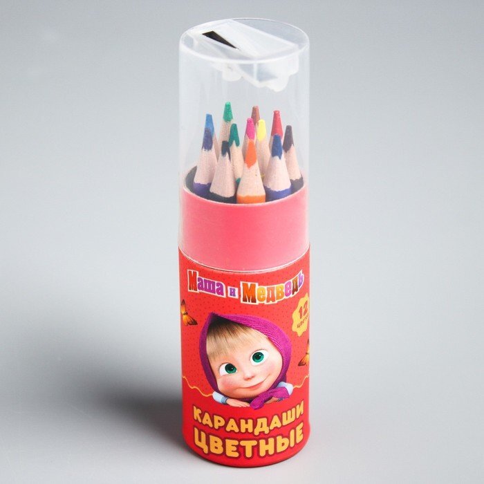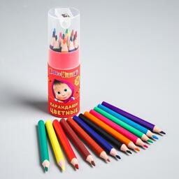 Карандаши цветные МИНИ, 12 цветов, в тубусе с точилкой, Маша и Медведь