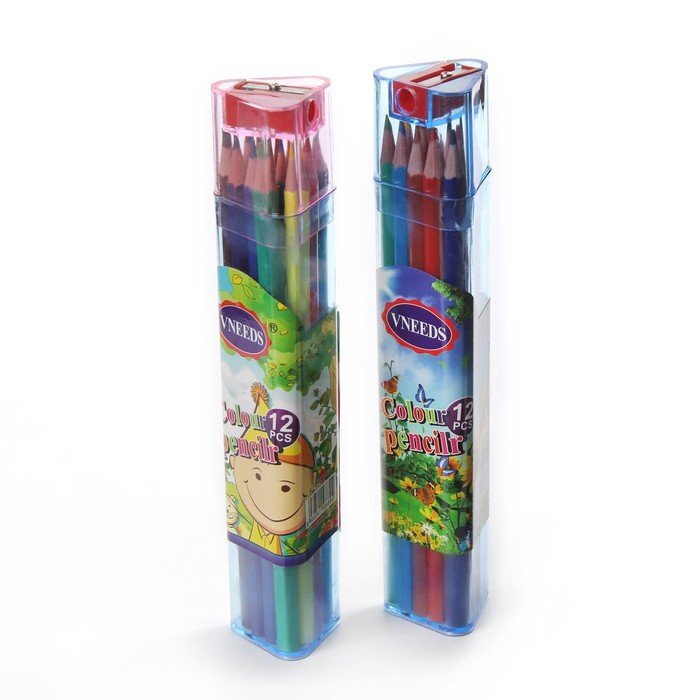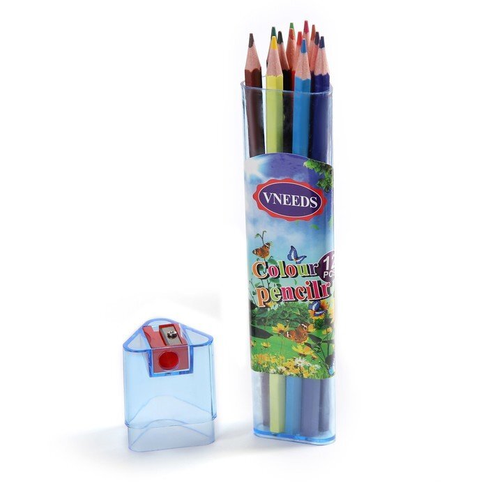 Карандаши 12 цветов, в пластиковом тубусе с точилкой, "Ассорти"