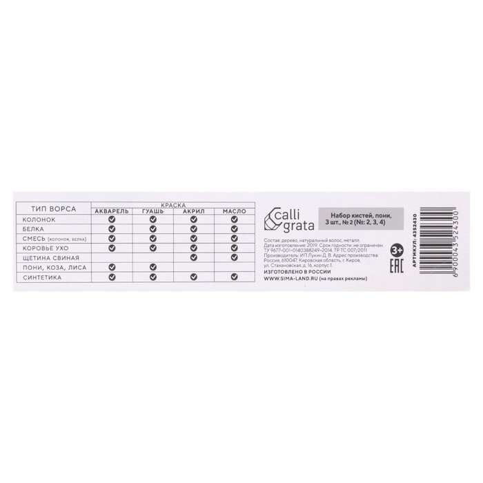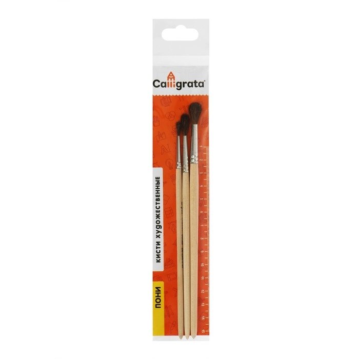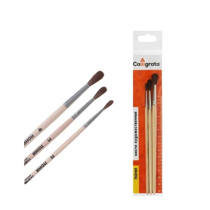 Набор кистей Пони 3 штуки, Calligrata №2 (круглые №2, 3, 4), деревянная ручка