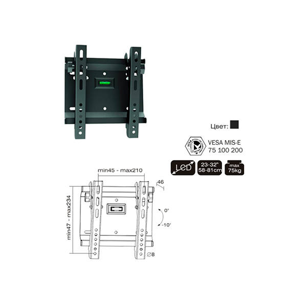 - Максимальное расстояние между крепежными отверстиями 210x234 мм