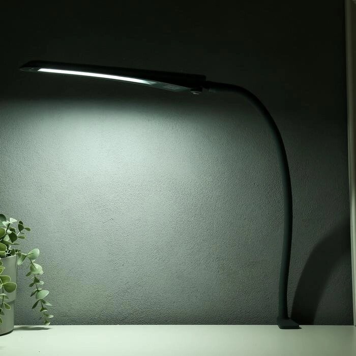Лампа настольная на струбцине Гермес 8Вт LED, гибкая стойка, антрацит, h=40 см