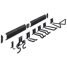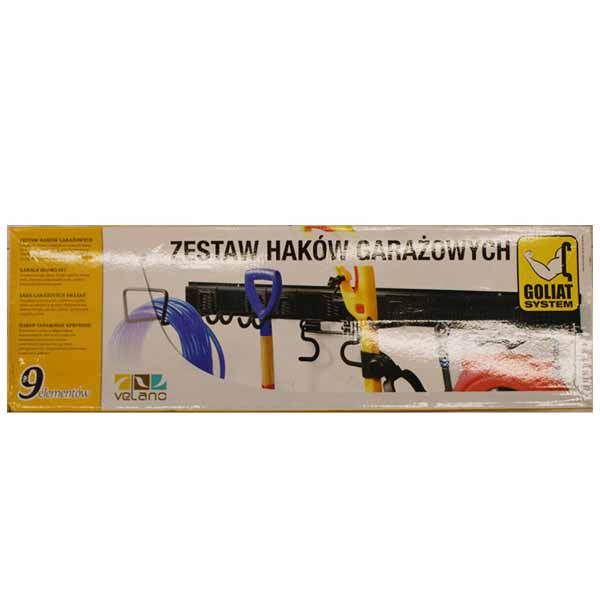 Комплект гаражных крюков, монтируемых на стене с помощью штанги, которая привинчивается штифтами и шурупами. Позволяет функционально использовать пространство на стене, благодаря возможности удобного хранения различного рода садового, спортивного инвентаря и электроинструментов. В состав комплекта входят: штанга для крепления к стене SGS (2 шт.), соединитель штанг SGL, левая и правая заглушки для штанги системы Голиаф SGM и крюки системы Голиаф SGH 1 (2 шт.), SGH 2, SGH 6, SGH 7 и SGH 10.