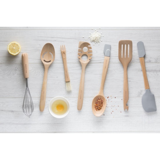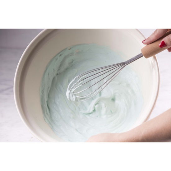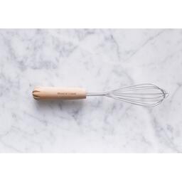 Венчик из нержавеющей стали поможет быстро взбить яйца или сливки. А деревянная рукоятка с насечками легко справится с приготовлением сока из цитрусовых.