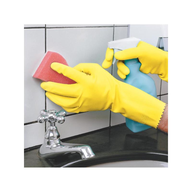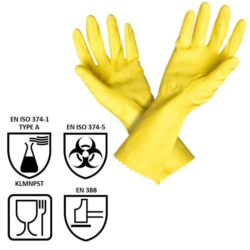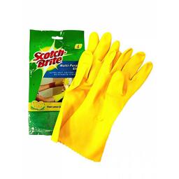 Перчатки латексные Scotch-Brite размер 9 (L), манжета срез с резцами. Защищают руки от соприкосновения с чистящими и моющими средствами. Упрочненные кончики пальцев обеспечивают защиту при чистке и уборке. Ультрамягкое хлопковое напыление внутри впитывает влагу, оставляя кожу рук сухой. Эластичные и прочные перчатки специально предназначены для многократного использования. Применяются для уборки дома, ванной, кухни, улицы. Удобно использовать для мытья посуды. Имеют свежий аромат лимона. Поставляются в мягкой упаковке.Особенности и преимущества:— износостойкие и долговечные: протестированы по стандарту EN 388:2016; устойчивы к абразивам и разрыву;— высокая сопротивляемость химикатам и моющим средствам по стандарту EN ISO 374–1:2016: Тип А;— перчатки защищают от бактерий и возбудителей грибковых заболеваний: протестировано по стандарту EN 374–5:2016 на герметичность.Вес пары — 70 г. Количество в упаковке: 1 пара. Количество упаковок в транспортном коробе: 24.