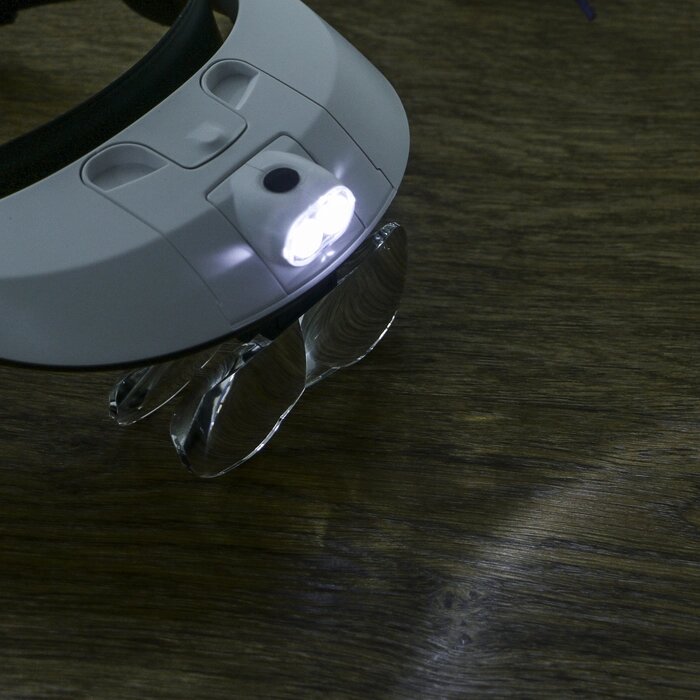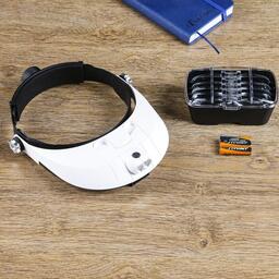 Лупа налобная 1-3.5х бинокулярная, с подсветкой, 5 линз в комплекте, 3 ААА