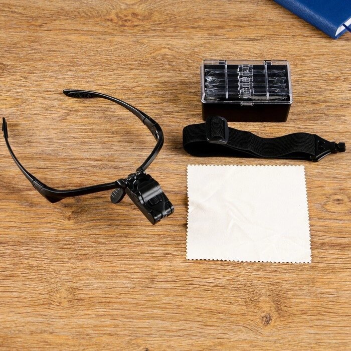 Лупа налобная 1-3х бинокулярная, с подсветкой, 5 линз в комплекте, 3ААА